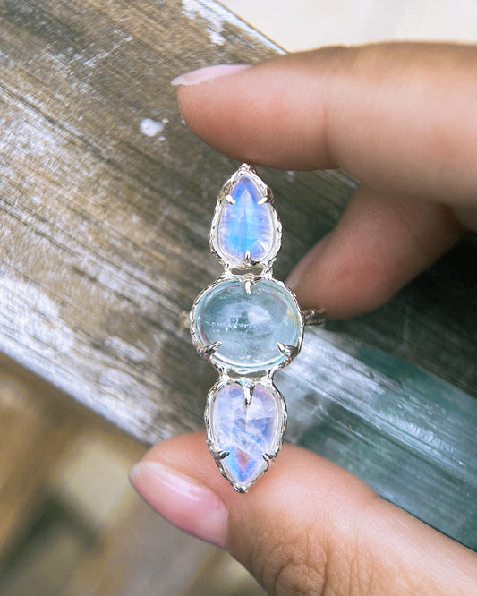 Seer Ring ⋄ Moonstone & Topaz ⋄ size 6.5