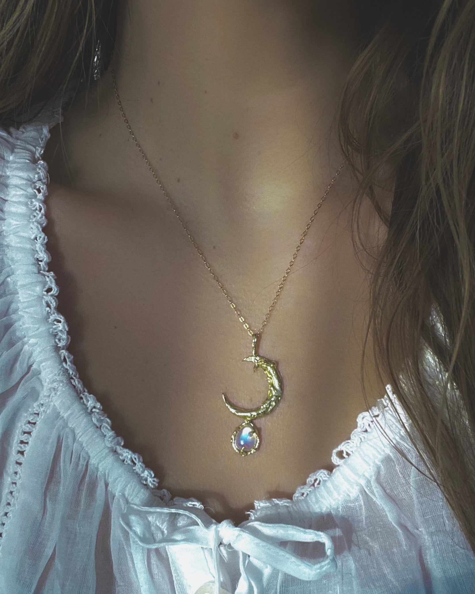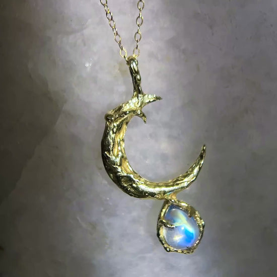 Crescent Moon Amulet ⋄ Rainbow Moonstone