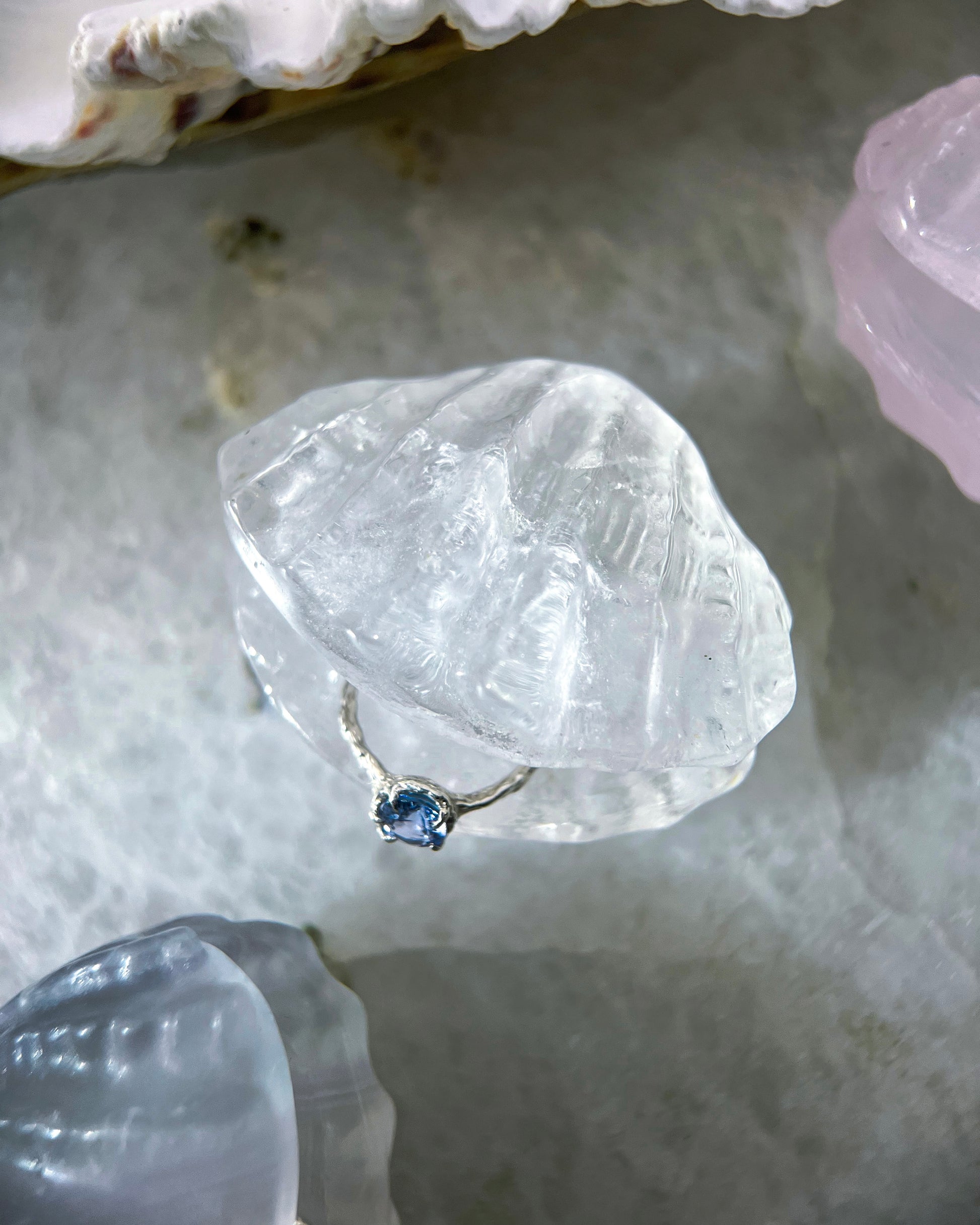 Crystal Seashell Ring Holder ⋄ Rose Quartz ⋄ Fluorite ⋄ Clear Quartz
