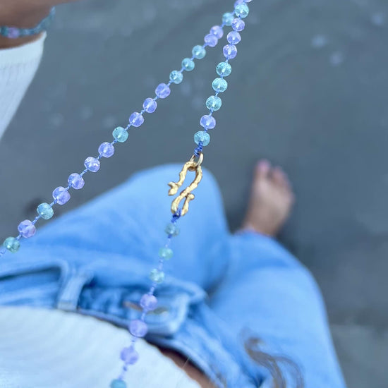 Dewdrops Long Necklace ⋄ Lavender Moon Quartz & Aquamarine