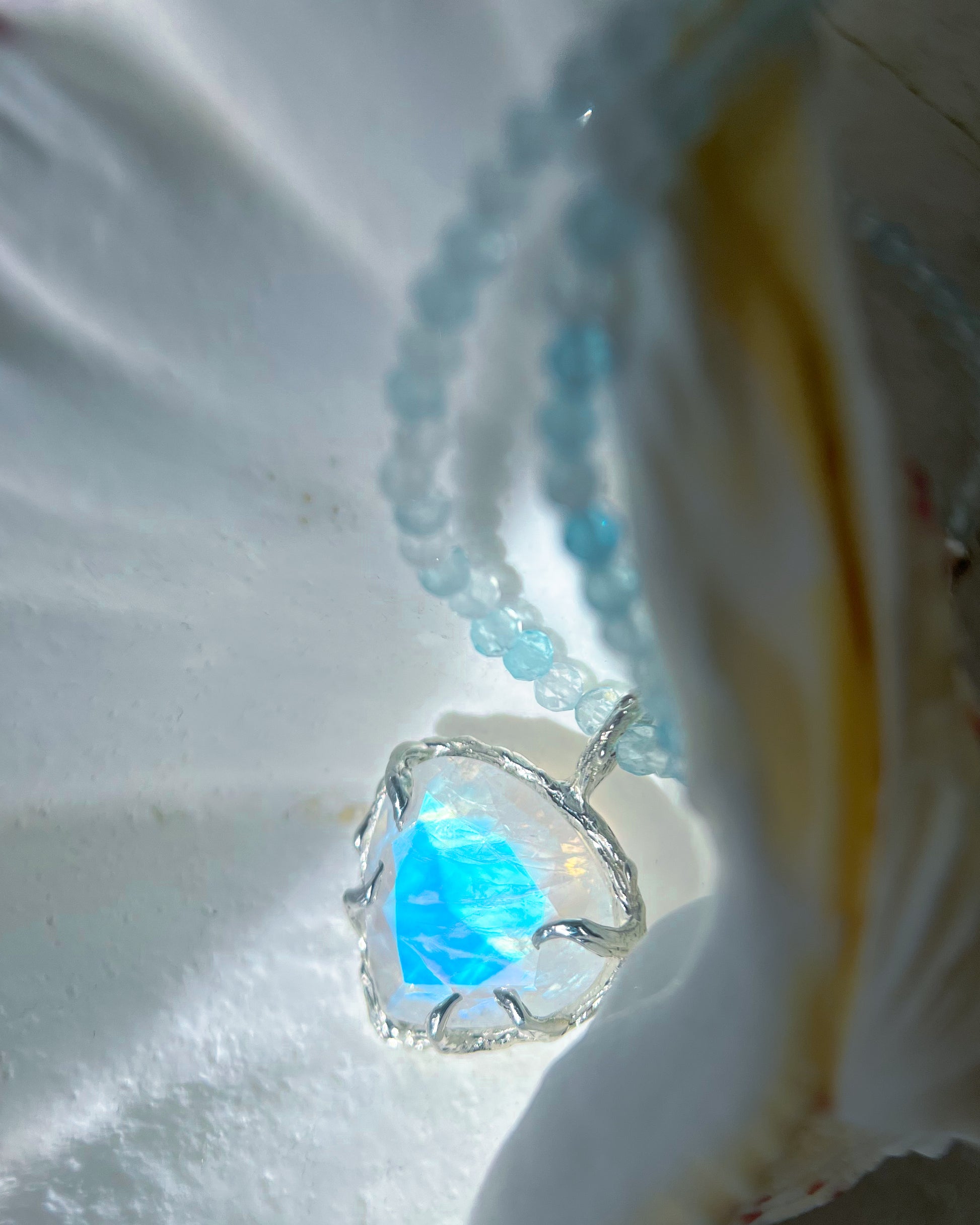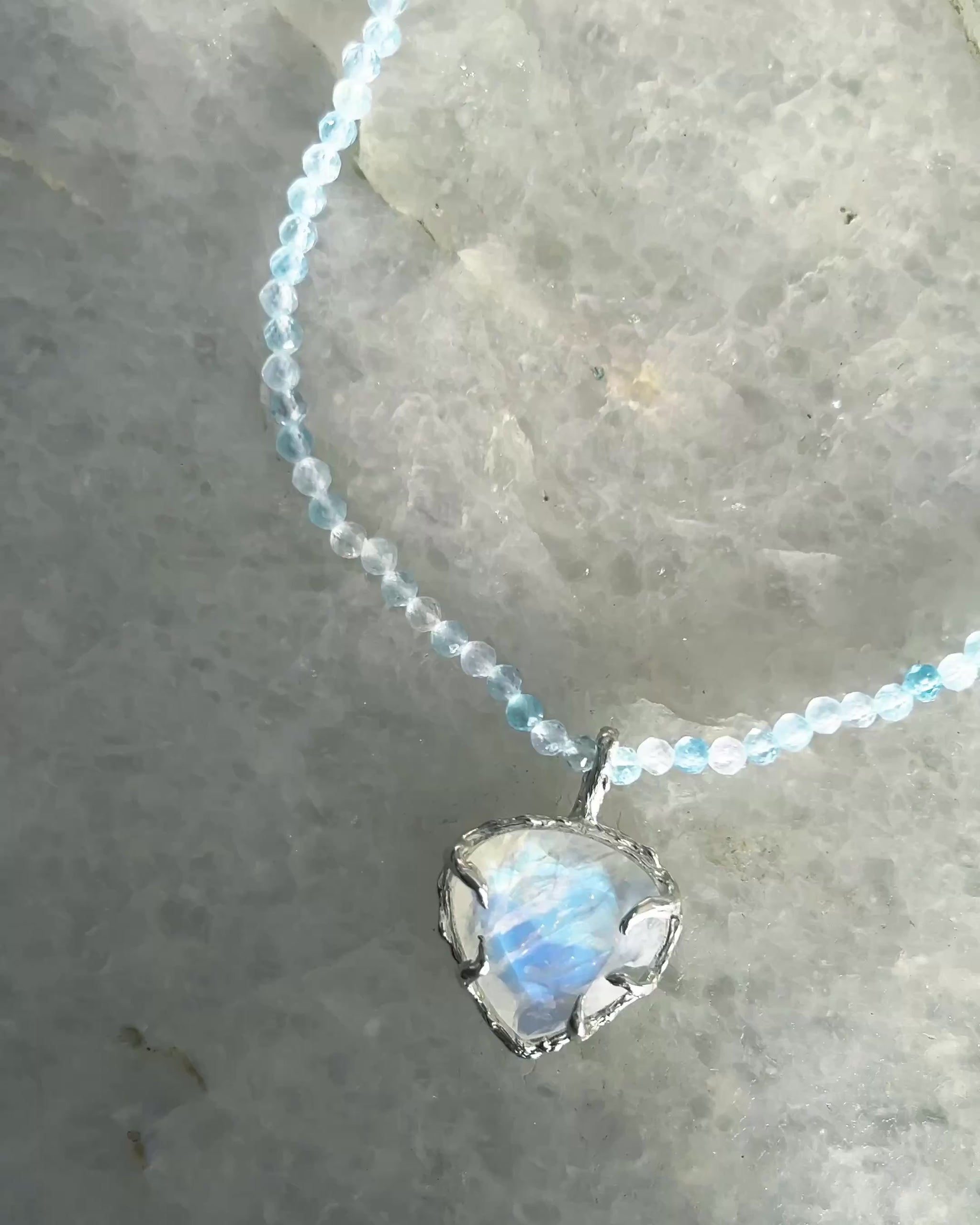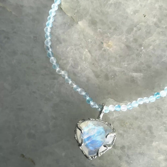Heart Portal Necklace ⋄ Rainbow Moonstone & Aquamarine