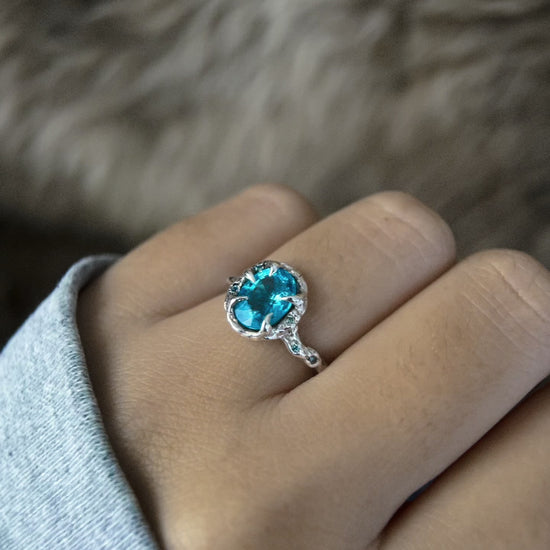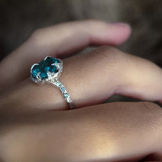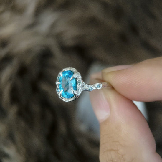 Natural Paraiba Blue Apatite in hand sculpted Sterling Silver