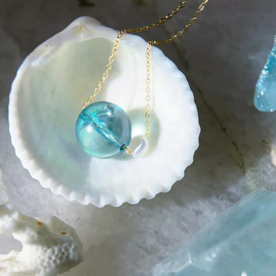 Ocean Pebble Necklace ⋄ Aqua Aura Quartz & Pearl