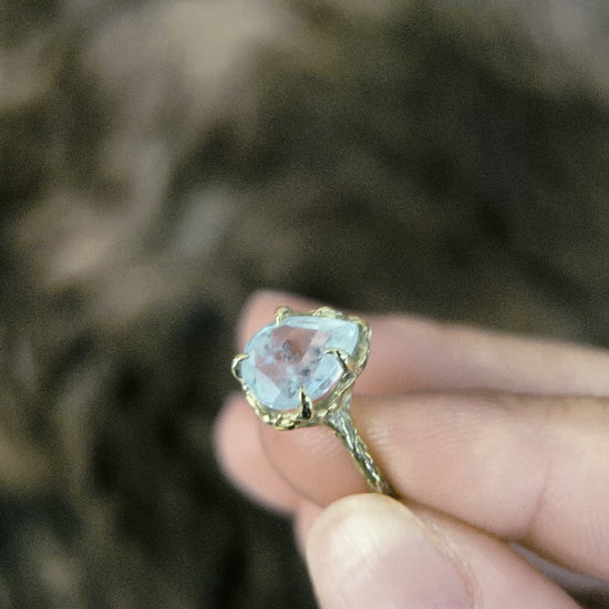 Natural Aquamarine in hand sculpted brass